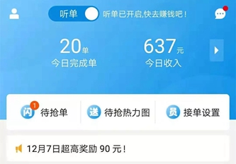 1、打开APP登录后,打开听单模式,选择接单类型和交通工具;(设置汽车,摩托车时,需上传驾驶证、行驶证、车辆及车牌照片)。