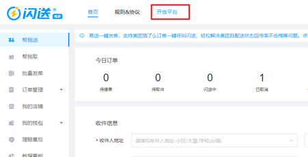 2、注册完成之后点击闪送【开放平台】用之前注册的商家账号可以直接登录。