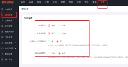 7、把前四步获取的参数填写到商城后台即可。其他的参数根据需求来配置即可,设置自动发货需要设置营业时间;设置——通用设置——营业时间——设置营业时间【可以自定义】。