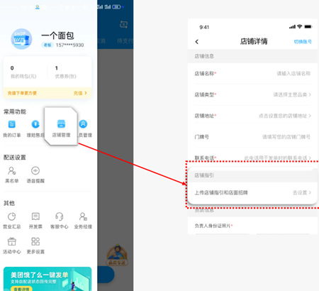 1、如果您已经有闪送商家账号:点击账户侧边栏—点击【店铺管理】—进入【店铺详情】页—添加【店铺指引】即可开通该功能。(如下图所示)