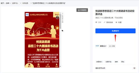 点击模板进入模板详细介绍页,并点击免费制作,即可开启表单制作。