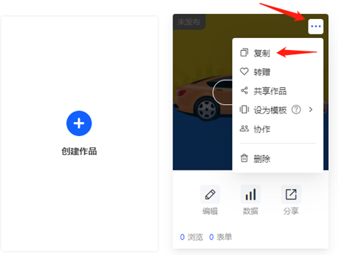 点击右上角“...”,并点击“复制”,即可完成复制创建。