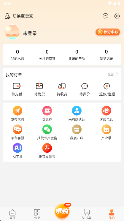 在个人中心能够切换到卖家服务,所有订单也是能够在这里浏览