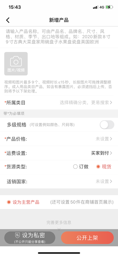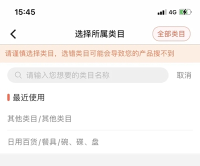 5.选择【所属类目】一定要按商品的分类正确选择!如果商品放在了错误的类目里,将无法搜索到这款产品,且排名会非常靠后。