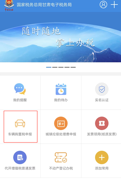 1、在陇税通APP端首页点击“车辆购置税申报”,进入申报表填写界面;重点关注:陇税通APP可免登录办理车辆购置税申报。