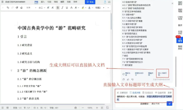 生成后点击【插入当前文档】,大纲即可插入内置文档,省去手动排版的麻烦。