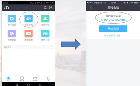 手机APP端:点击“加入会议”,输入要拨打的会议号码,点击“加入会议”;