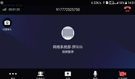 手机端:会中可以通过“静音”按钮关闭自己的声音,通过“挂断”退出会议,通过“切摄像头”切换前置和后置摄像头,通过“共享”将手机画面共享给与会者;点击“更多”---“语音模式”,切换为语音入会,节省流量;