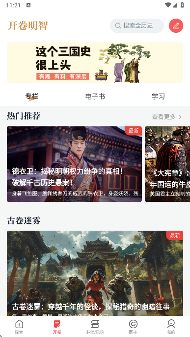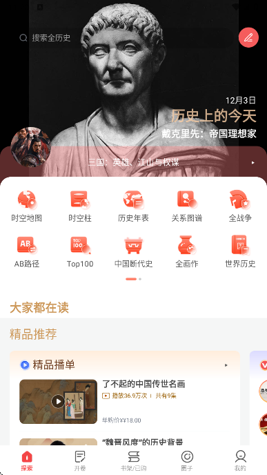 在探索页广大用户是可以获取到全面的功能服务,用户可以了解历史类相关信息