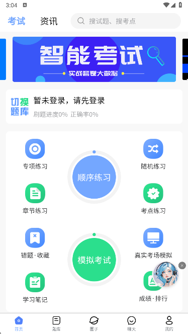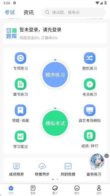 1、船员易考通上面的功能都是需要登录使用,比如首页切换题库就会提示用户登录了