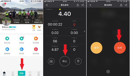 3、黑鸟单车在停止时可以支持自动暂停的,不需要操作,这时骑行时间会停止,不影响均速。