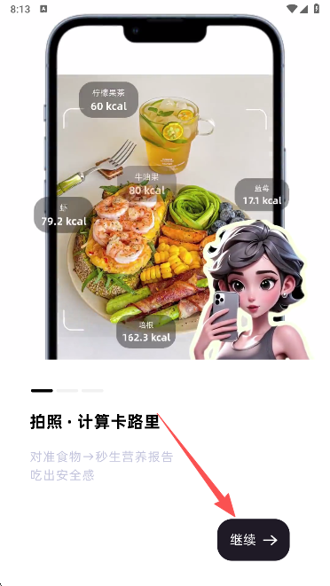 拍照即记录,食物名字、热量、其他营养成分自动输出,全程0输入自动记录