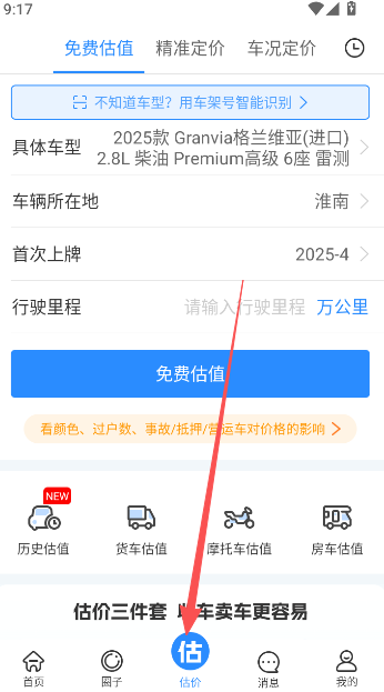 3、估价:评估车型带来最新2025年的估值信息,选定各车型给车型有以后给出专业的估价方案。