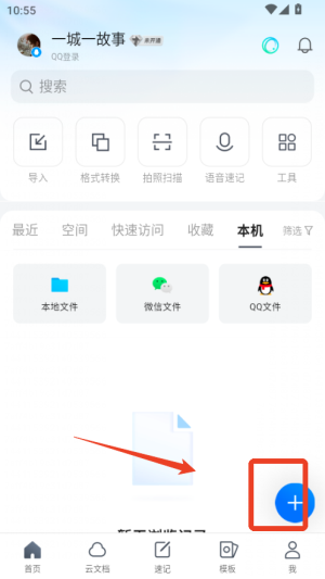 1、打开腾讯文档app,点击新建按钮选择创建空白文档或使用会议纪要等现成模板开始编辑。