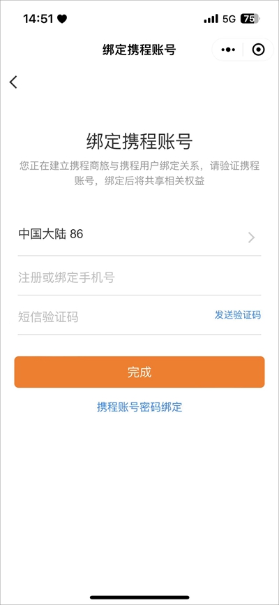 3、根据屏幕上的指示完成操作,以验证并关联您的个人账号,如果是携程内容员工需要绑定,请联系专业客服进行解决。