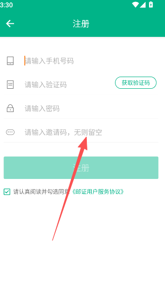 3、输入用户本人手机号、短信验证,设置用户密码完成注册。