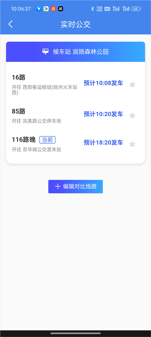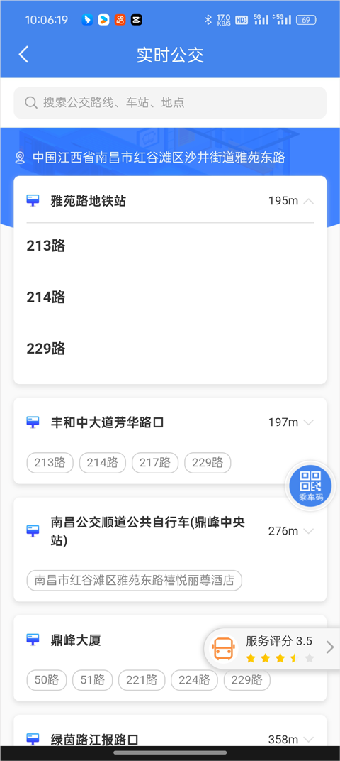 3、搜索结果中点击对应线路,即可查看当前车辆位置、到站时间和完整路线图;