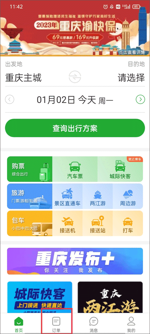 愉客行致力于服务公众出行,提供了汽车票、城际快客、车站接送、机场专线、景区直通车、重庆周边游、旅游包车、两江游、出租车、网约车等线上服务产品,全面覆盖道路出行领域,为政府科学决策和行业精准监管提供保障,为用户提供一站式出行解决方案,为市民提供定制化、个性化、智慧化、品质化的出行服务。