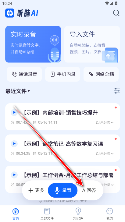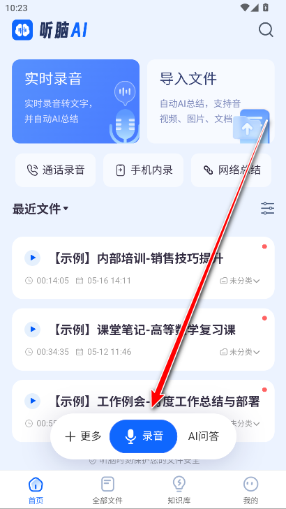 实时录音:打开听脑AI应用,点击主界面“录音”按钮,进入录音界面。