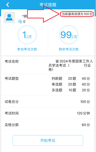 4.进入后可以看到红色箭头所指【当前最高成绩】