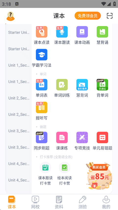 深度学习英语,帮孩子们会听会说又会考。购买会员还送直播券哦。