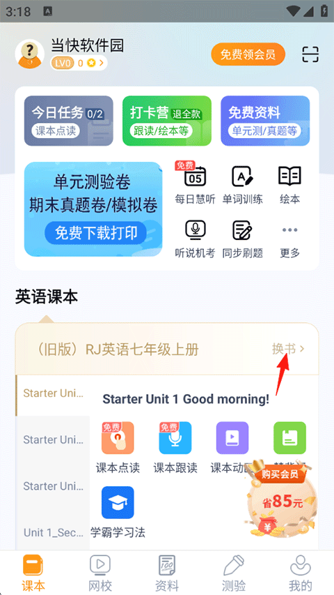 课本学习:同步校内外课本,沉浸式体验课本,支持课本点读、连读、复读、跟读测评,还有课本翻译、课后小练习看答案、课本听力文稿等;