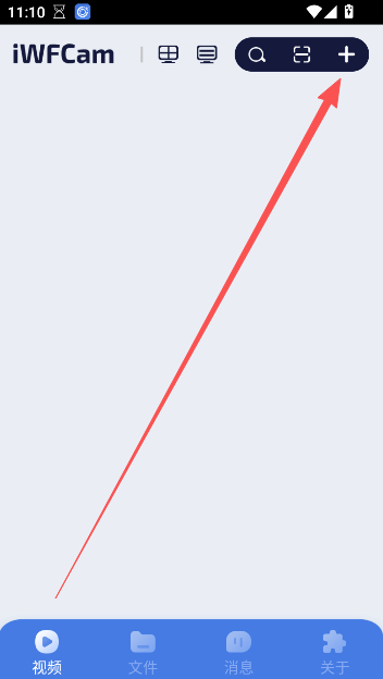 1、进入软件以后,点击右上方的+选项,进行设备的连接操作。
