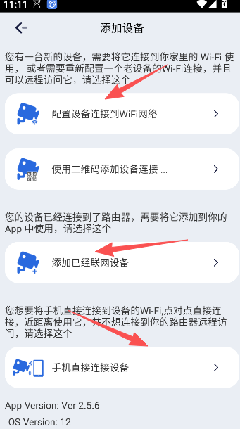 2、在添加设备的页面,选择你要连接的方式,比如:配置设备连接到WiFi网络、添加已经联网设备或是手机直连,每种方式都有它的便捷性,按照用户股本人的实际需求出发去选择。