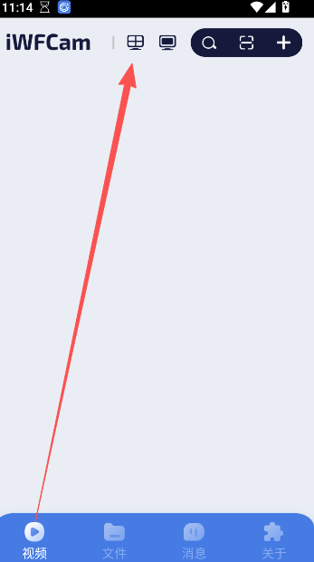 1、点击首页视频页面上方的图示图标,进入监控视频查看选项。