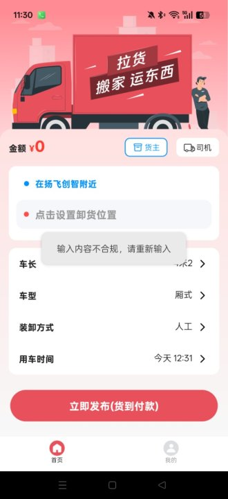 2、对于货物的起始地点还有目的地有要严格遵守平台规则上传,否则无法成功发布送货需求。