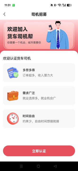 1、在司机招募页面,点击立即认证。