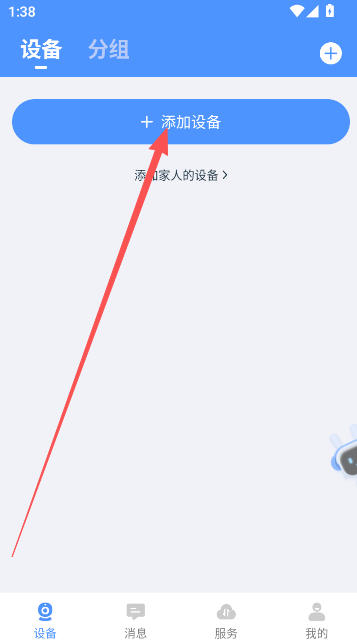 2、在设备页点击进行摄像头的添加操作。