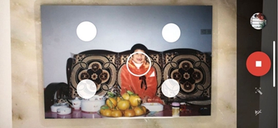 打开「照片扫描仪」,将需要扫描的照片置入摄像画面框中,按拍摄键拍摄。