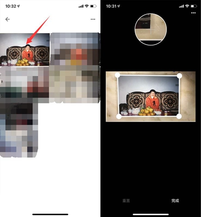 No.5:进入调整界面以后,又会出现四个圆坨坨,用手挪动这些圆坨坨可以微调边角的范围,你挪动的时候还会出现一个放大镜,辅助操作。调整到理想状态以后,点击“完成”。