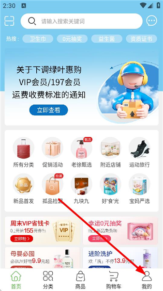 1、打开绿叶商城app正版,点击底部我的选项,进入个人中心页面。