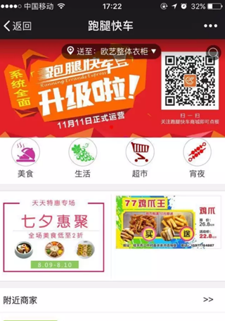 由于部分城市暂未开通此功能,因此会出现如图所示的界面,有城市支持该功能的时候,用户可通过上方的搜素栏,输入商家、商品名称来获取美食列表。