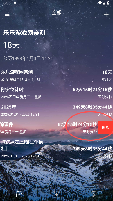 1、需要在你想要删除的事件区域向左滑动呼出“删除”按钮点击即可