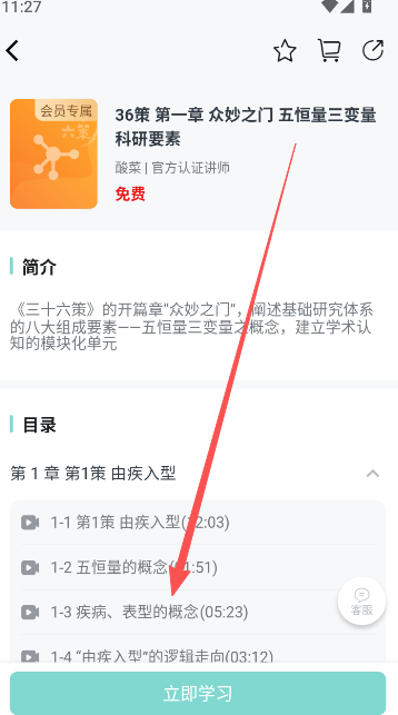 3、在课程的详情页面,点击立即学习,开始你的课程学习。