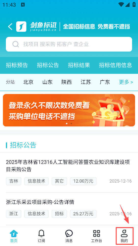 剑鱼标讯:界面设计简洁明了,操作逻辑清晰,新手上手快。移动端与网页端数据同步,随时随地查看标讯。