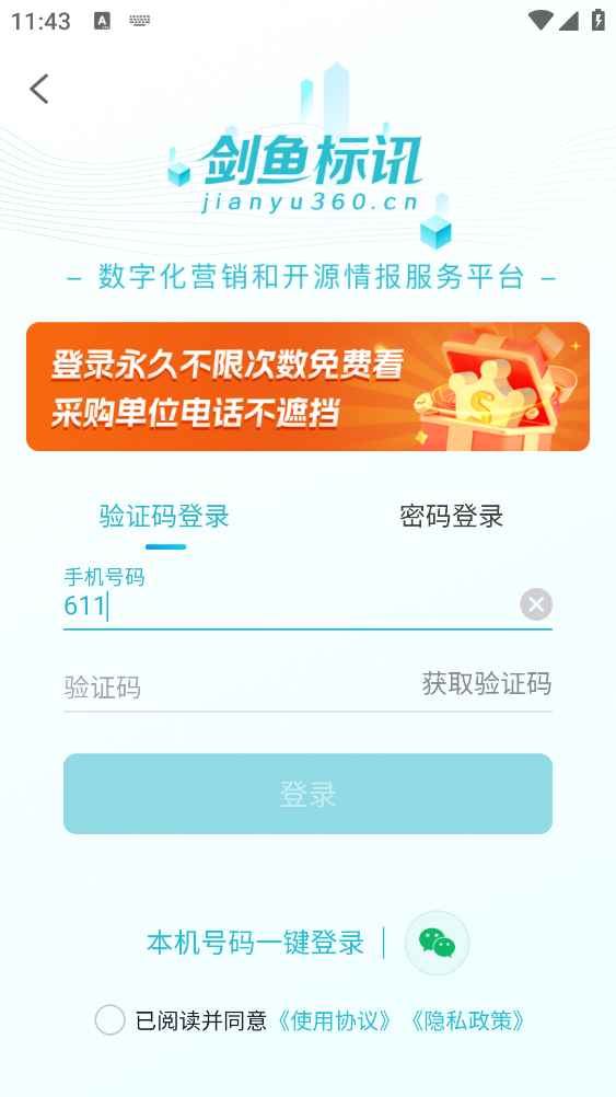 剑鱼标讯是一款专业高效的招标信息服务平台,依托大数据与云计算技术,为用户提供全国范围内招标和拟建项目的实时搜索与订阅服务,该应用支持多维度精准筛选,信息完整无遮挡,并可通过微信与软件双通道推送定制化提醒,帮助用户第一时间掌握商机!