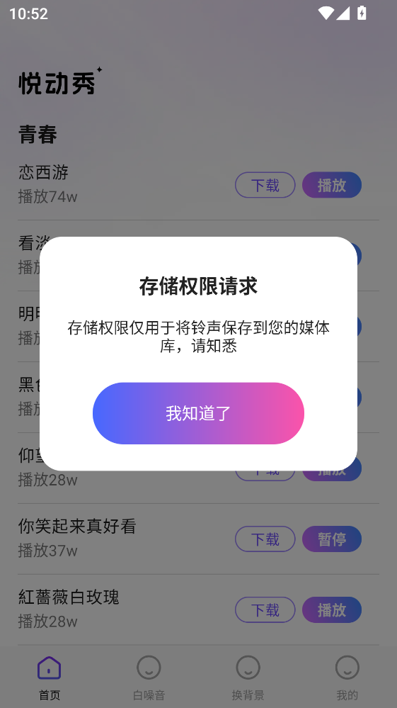 1、打开悦动秀,挑选一个你喜欢的铃声并点击,接着在系统铃声页面完成设置即可。