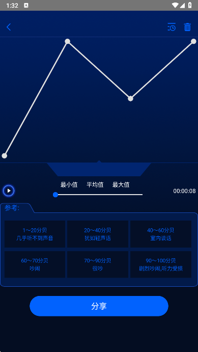 【分贝检测记录】超长分贝测试记录保存,详细的噪音分贝信息。检测噪音高清录音回放;