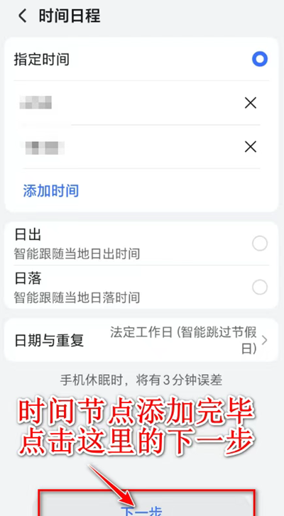 下一步,点击“指定时间”,进行细致具体的时间节点设置