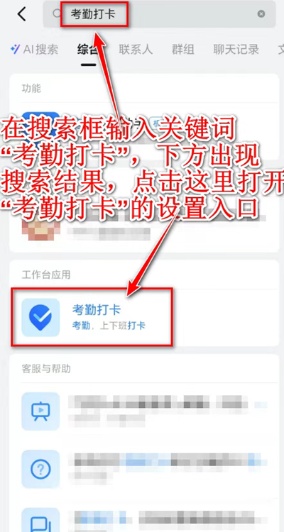 1,找到钉钉考勤打卡的设置入口,现在给大家一个快捷操作的思路,那就是“万事离不了搜索”,只要能看到APP的搜索框,咱就输入关键词,用搜索找到需要的操作入口。看图: