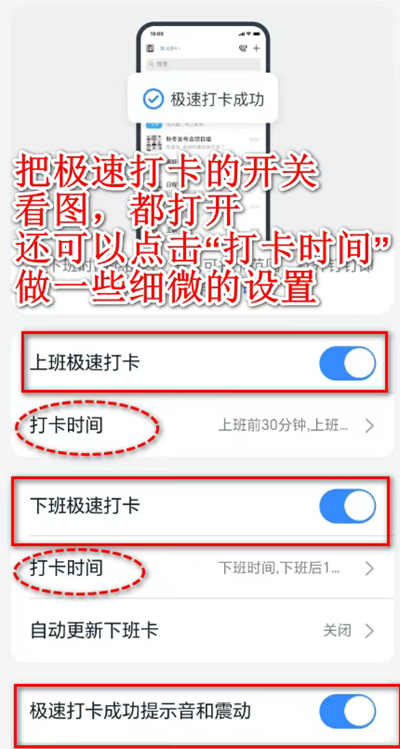 二、再在“钉钉”APP里,设置好极速打卡。就实现了“在上班前,下班后自动打开“钉钉”APP,自动打考勤卡”的自动化操作,这样的更是不是很便利呀?完成这样的设置其实一点也不难,下面请看图操作: