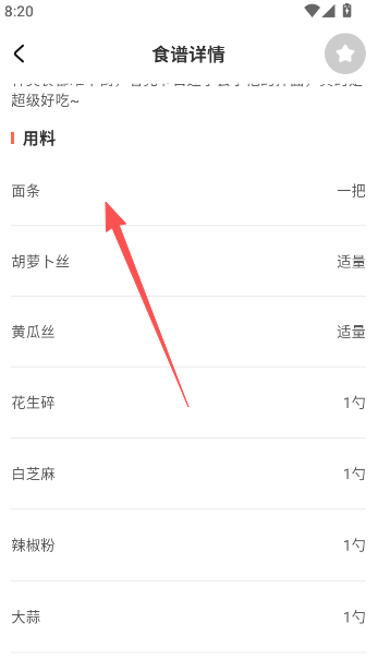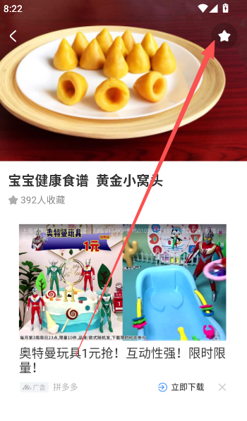 2、点击菜谱右上方的收藏图标,完成收藏,待之后打开软件随时可查看。