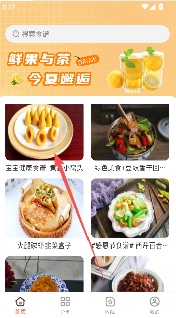 1、首页或是分类中查看,点击进入菜谱的详情页面。