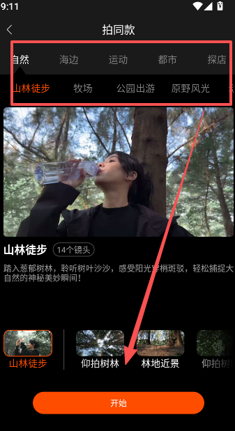 2、按分类选择拍摄成品效果,点击开始正式拍摄。