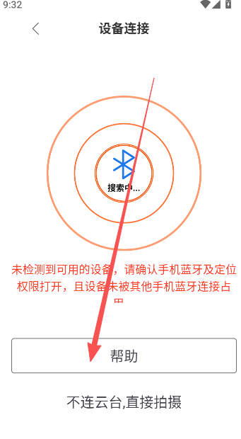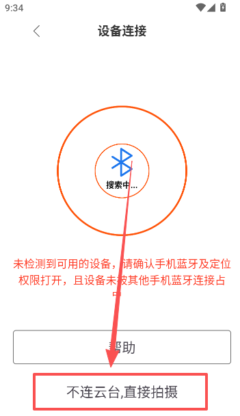 1、蓝牙连接异常或是其他问题,导致无法使用拍摄功能,这时候可以点击下方不连云台,直接拍摄开始接下来的操作。