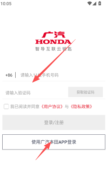 1、使用手机号码或是广汽本田APP快捷登录进入。